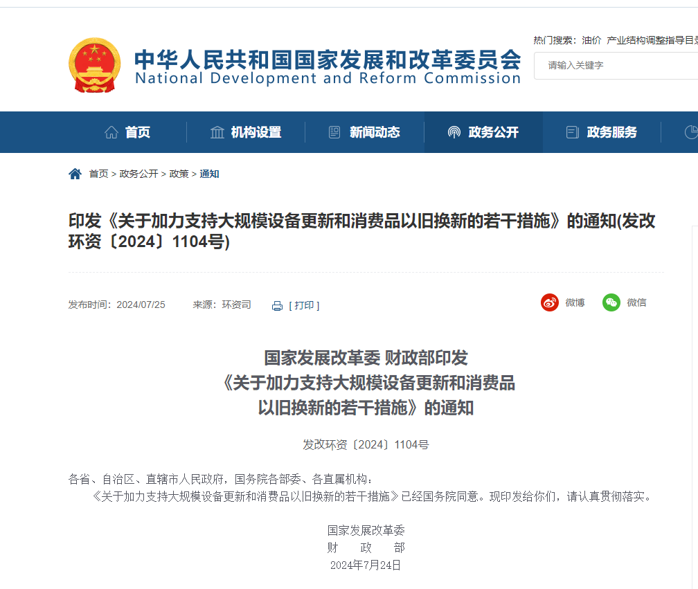 關于加力支持大規(guī)模設備更新和消費品以舊換新的若干措施